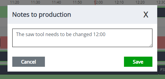Quick notes can be small messages that help operators communicate more effectively and precisely about certain work events—for example, notifying them that a part must be replaced or must undergo maintenance soon.