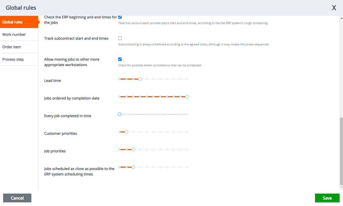 Job priorities: You can insert job priorities by right-clicking on a process step in the scheduling view. The Job priorities option has the same logic as the previous parameter, and the AI understands that it is essential not to delay important jobs. By using this parameter, you are telling the AI how much it should consider this criterion.