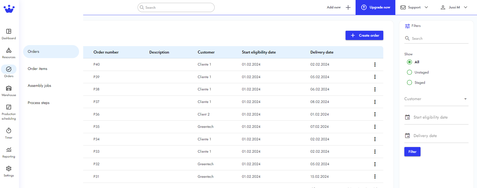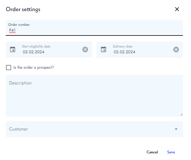 - You also have the option to make this order a prospect. This means you can get the production plan of this order to get a realistic date when your company can complete it without scheduling. This option is generally used to support your company's sales teams.