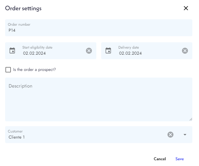 - A new window will appear where you can edit the information order's information. Click Save when you have finished.