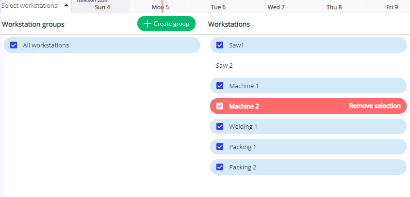 - Finally, click anywhere else on the GANTT Timeline to close the menu and see only the desired workstations. Remember, you can change this option at anytime.
