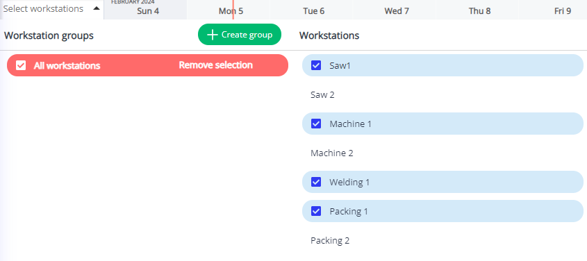 - Finally, click anywhere else on the GANNT Timeline to close the menu and see all the workstations now.