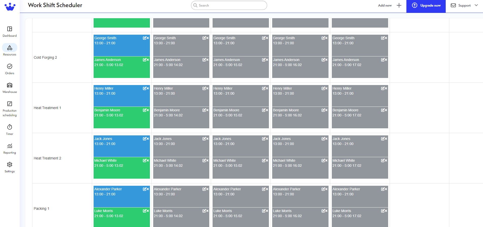 Shift scheduling helps you organize and assign work hours to employees at specific times. Each shift is linked to a workstation and indicates the workstation's capacity. This system ensures that each workstation is staffed appropriately to meet operational demands and reflects its capacity to handle workloads at different times.