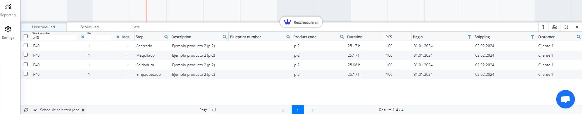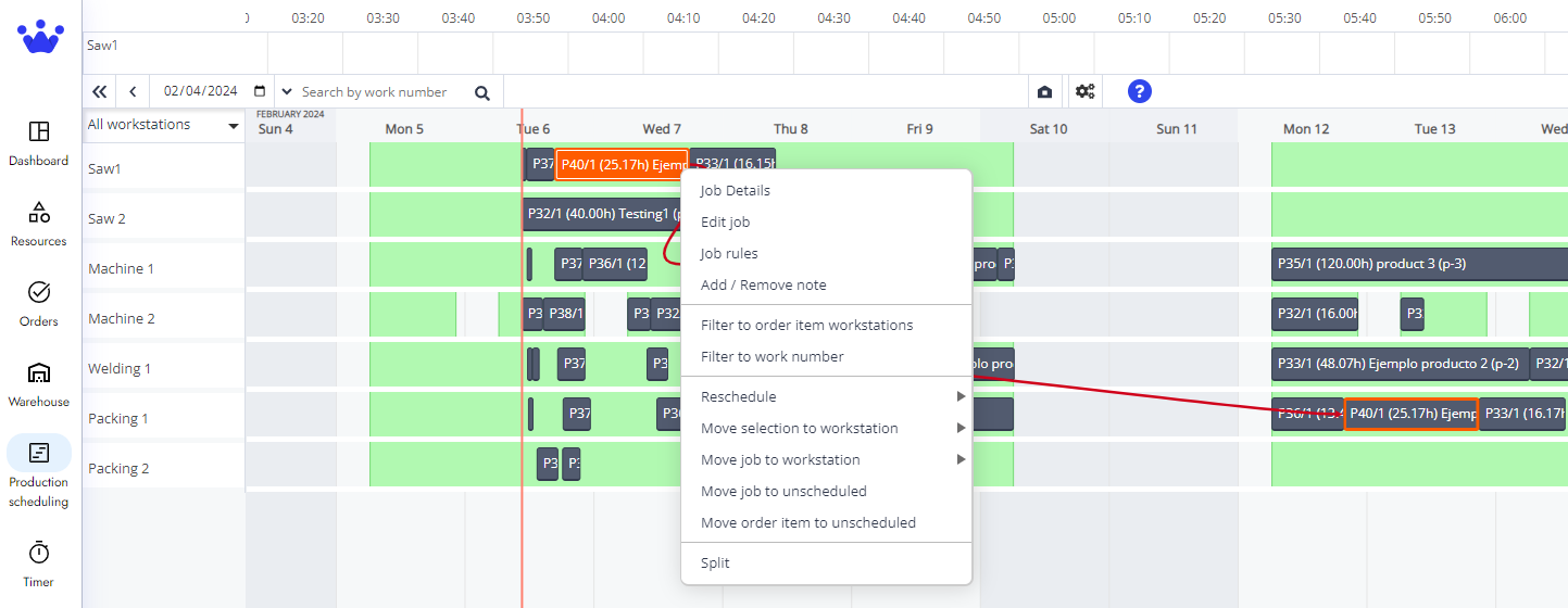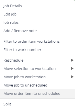 - Right-click on the order item you want to unschedule. In this example, we will pick P40. A new dropdown menu will appear.