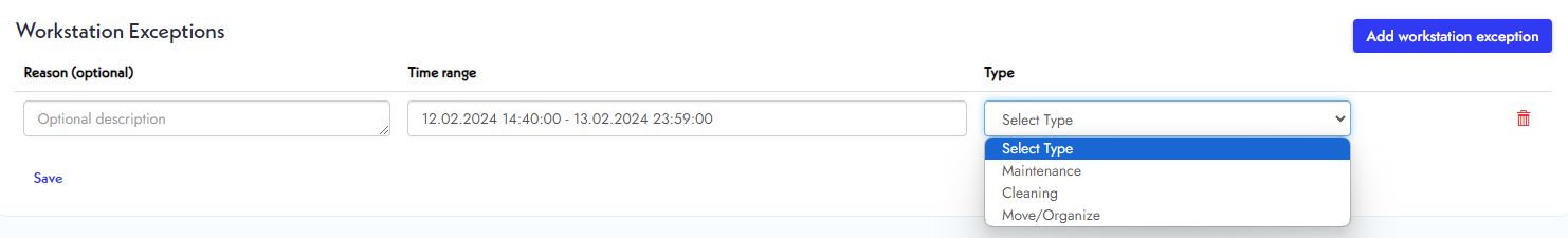 There are several types of Workstation Exceptions.